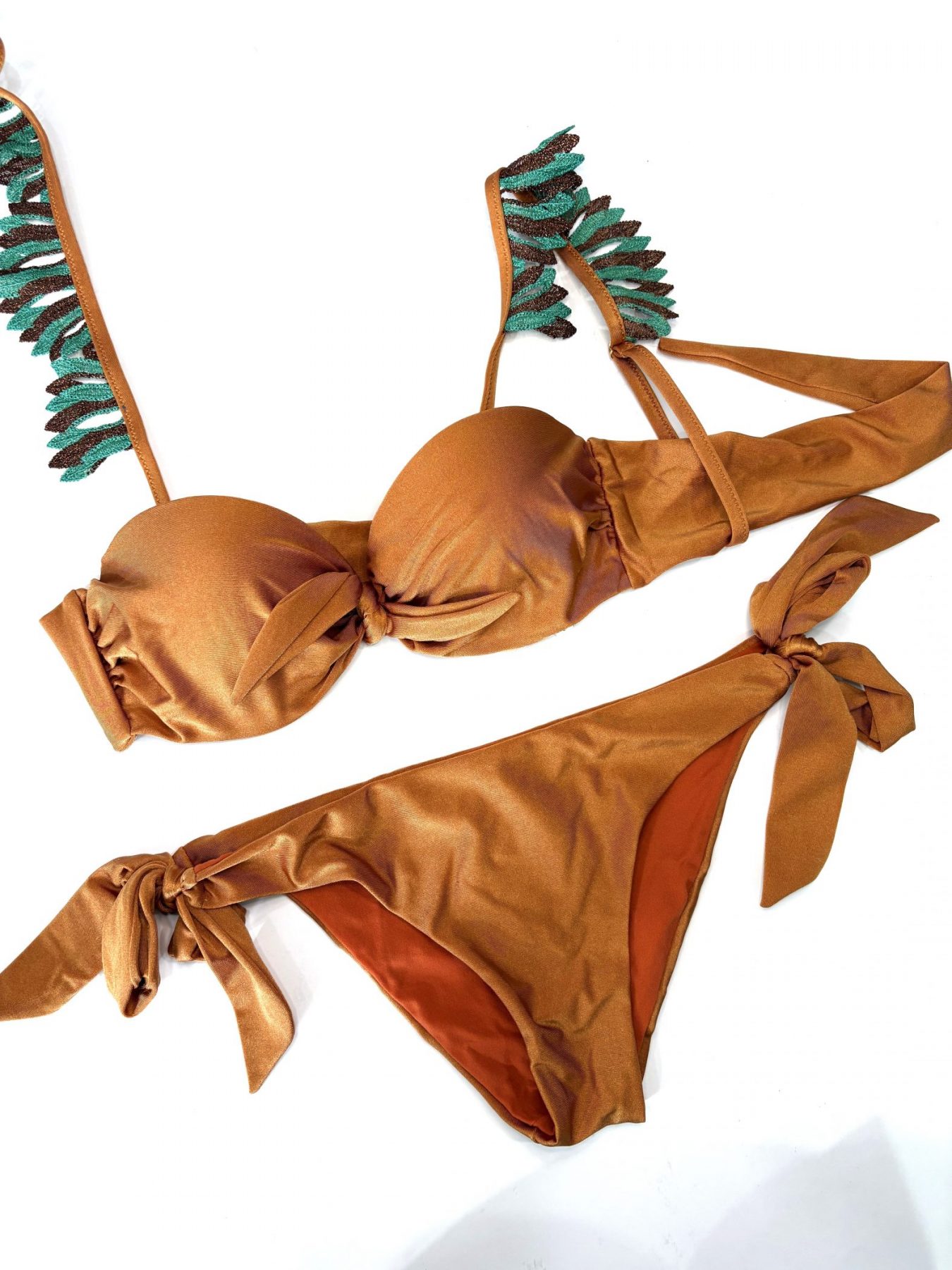 Un’esplosione di stile e dettagli unici: questo bikini ambra della linea M’Ama Non M’Ama è perfetto per chi ama distinguersi con eleganza anche in spiaggia.