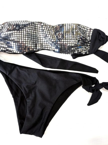 Il top a fascia modello caramella è comodo e versatile, con un laccetto centrale che permette di legarlo anche al collo, per un maggiore sostegno e una vestibilità personalizzata. La fantasia multicolor dona energia e allegria, perfetta per risaltare l’abbronzatura.