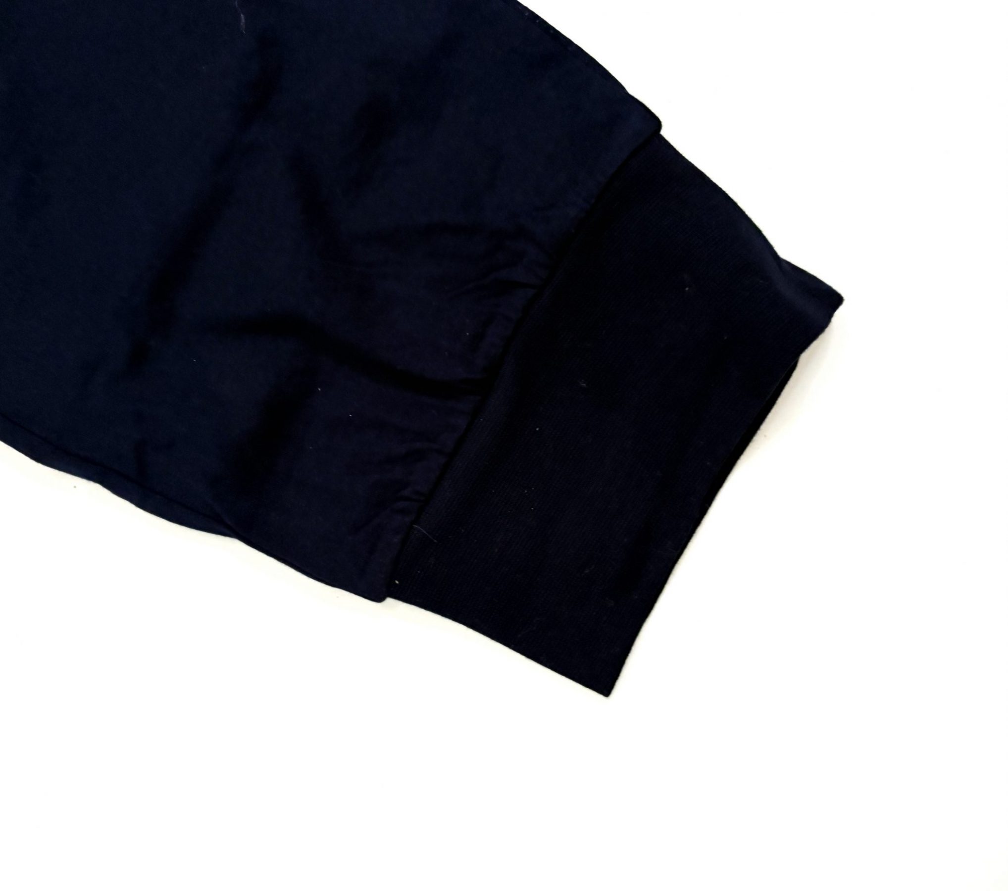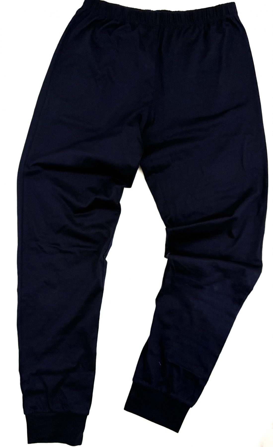 Il pantalone lungo in tinta unita blu completa il completo con sobrietà e praticità, ideale per ogni stagione.