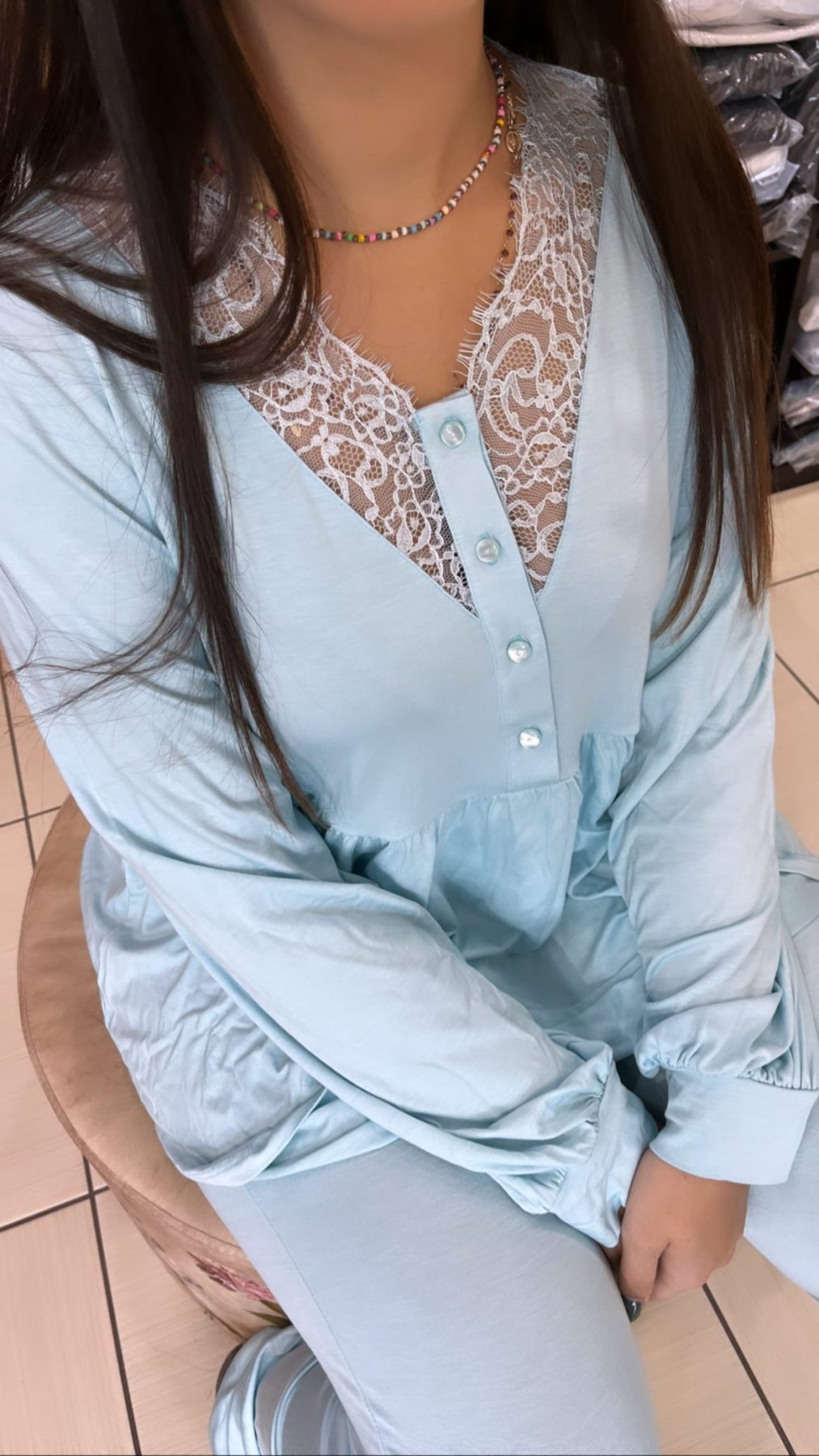 Scopri il nostro pigiama con taglio serafino e bottoni, un capo elegante e raffinato che unisce comfort e stile. Il design con scollo a V, arricchito da un delicato pizzo, aggiunge un tocco di femminilità, mentre i bottoni con dettaglio brillantino donano un accento di luce sofisticato. Realizzato in morbido tessuto, questo pigiama offre una vestibilità comoda e confortevole, ideale per la notte o per momenti di relax a casa. Perfetto per chi cerca un abbigliamento da notte chic, con dettagli eleganti che non passano inosservati. Un must-have per le tue serate di riposo.
